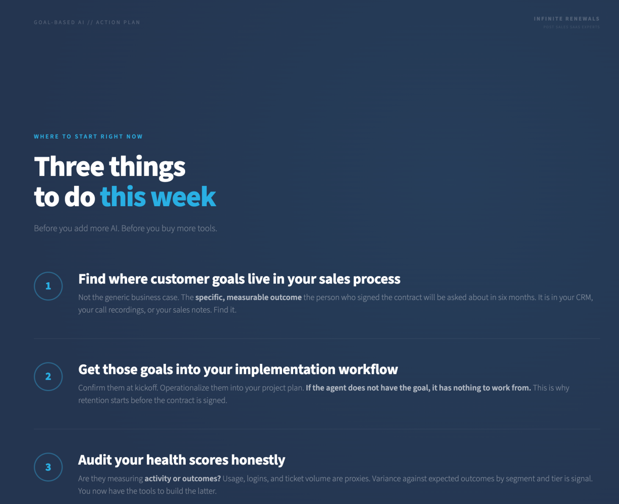 When companies clearly define what success looks like for each customer, AI systems can track whether progress is actually happening.